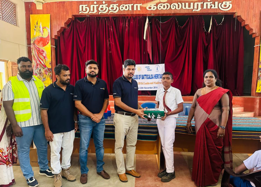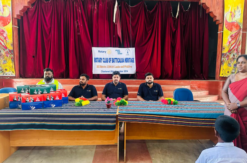 பின்தங்கிய மற்றும் வறுமை நிலையில் உள்ள மாணவர்களின் கற்றல் செயற்பாட்டினை ஊக்குவிக்கும் வகையில் ரோட்டரி கழகம் மட்டக்களப்பு ஹெறிடேச்சினால் முன்னெடுக்கப்பட்டு வருகின்ற பல்வேறு வேலைத்திட்டங்களில் ஒன்றாக இன்றைய தினம் தெரிவுசெய்யப்பட்ட 57 மாணவர்களுக்கு பாடசாலை பாதணிகள் வழங்கி வைக்கப்பட்டது.