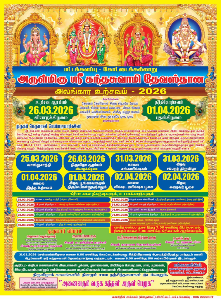 திருவிழா காலங்களில் பல்வேறு சிறப்பு பூஜைகள், வழிபாடுகள் மற்றும் ஆன்மிக நிகழ்வுகள் இடம்பெறவுள்ளதால், பக்தர்கள் அனைவரும் ஆசார சீலத்துடன் ஆலயத்திற்கு வருகை தந்து முருகப் பெருமானின் அருளைப் பெறுமாறு ஆலய நிர்வாகத்தினர் அன்புடன் கேட்டுக்கொண்டுள்ளனர்.